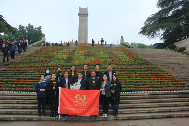 在雨花臺烈士紀(jì)念碑下,全體人員整齊列隊靜默肅立,鞠躬默哀,表達對烈士們的崇高敬意和深切悼念之情。黨員們面向黨旗舉起右拳莊嚴(yán)宣誓,重溫入黨誓詞,并集體瞻仰烈士紀(jì)念碑,為英雄烈士們獻上花束表達敬意。