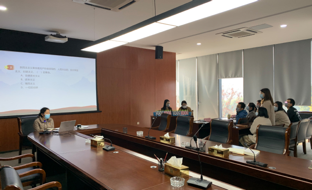 活動現(xiàn)場氣氛熱烈活潑,大家精神飽滿,配合默契,充分展現(xiàn)了豐富的知識儲備和較高的理論素養(yǎng)。在搶答題環(huán)節(jié)大家拼手速、比知識,眼疾手快、踴躍搶答,精彩的臨場表現(xiàn)贏得了其他組成員的陣陣掌聲。經(jīng)過激烈的角逐,“不忘初心組”實力勝出。