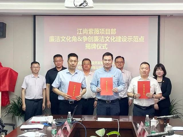 在學(xué)習(xí)貫徹習(xí)近平新時(shí)代中國特色社會(huì)主義思想主題教育中,為加強(qiáng)清廉教育,引導(dǎo)員工繃緊廉潔自律這根弦,確保工程項(xiàng)目建設(shè)廉潔高效,近日,奧體公司和江山智聯(lián)公司聯(lián)合黨總支(以下簡稱“聯(lián)合黨總支”)在江尚紫薇項(xiàng)目部創(chuàng)建廉潔文化角。相關(guān)參建單位參加。