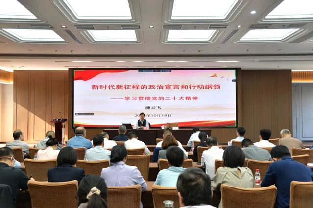 會(huì)上,柳云飛教授以《新時(shí)代新征程的政治宣言與行動(dòng)綱領(lǐng)——學(xué)習(xí)貫徹黨的二十大精神》為題,主要從“黨的二十大的主題和主要成果”“黨的二十大提出的新思想新戰(zhàn)略新部署”“黨的二十大的重大意義”“深入學(xué)習(xí)貫徹黨的二十大精神,推動(dòng)高質(zhì)量發(fā)展”等四個(gè)方面,深入闡述了黨的二十大精神的深刻內(nèi)涵。本次宣講內(nèi)容豐富、深入淺出,對于集團(tuán)全體黨員干部職工進(jìn)一步全面理解、準(zhǔn)確把握和深入貫徹黨的二十大精神具有很強(qiáng)的指導(dǎo)意義。