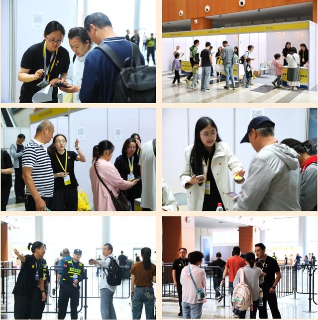黨員突擊隊成員們身著統(tǒng)一制服,精神飽滿地投入各項支援工作。在現(xiàn)場登記處,他們熱心引導觀眾掃碼登記入場,無論是手機操作不熟悉,還是掃碼過程中出現(xiàn)的技術問題,他們都能細心解答,讓觀眾感受到省心和貼心;在入場核驗處,他們嚴格執(zhí)行入場規(guī)定,維護展會秩序,確保展會安全有序進行;在服務指引時,他們?yōu)閰⒄股毯陀^眾提供熱情周到的服務,耐心解答疑問,主動提供幫助;在現(xiàn)場調(diào)研時,他們認真收集反饋意見,為今后的展會工作提供有力支持;館內(nèi)黨員先鋒示范區(qū)還同時提供信息咨詢、失物招領、應急充電服務以及應急藥箱和免費飲用水等物資,多措并舉為前來參觀的群眾營造良好的觀展體驗。