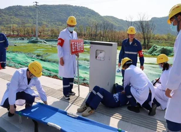 本次演練主要分為事故演練和應急處置措施培訓兩部分。首先開始的事故演練以一名電工檢修配電箱時突發(fā)觸電事故為背景。項目部接到事故匯報后,立即按既定預案啟動事故應急處置程序,各應急小組迅速到位、協(xié)調(diào)配合,分別承擔現(xiàn)場警戒、人員應急醫(yī)護救援、后勤物資保障等任務,順利完成了本次演練。在應急處置措施培訓環(huán)節(jié),項目部邀請了溧水區(qū)永陽鎮(zhèn)社區(qū)醫(yī)院醫(yī)生現(xiàn)場講解、培訓了心肺復蘇、人工呼吸等施工常見事故的緊急處理措施。全部演練結(jié)束后,南京市溧水區(qū)城鄉(xiāng)建設局質(zhì)量安全監(jiān)督站負責人對演練成果及項目部有序有效的組織能力表示了肯定。