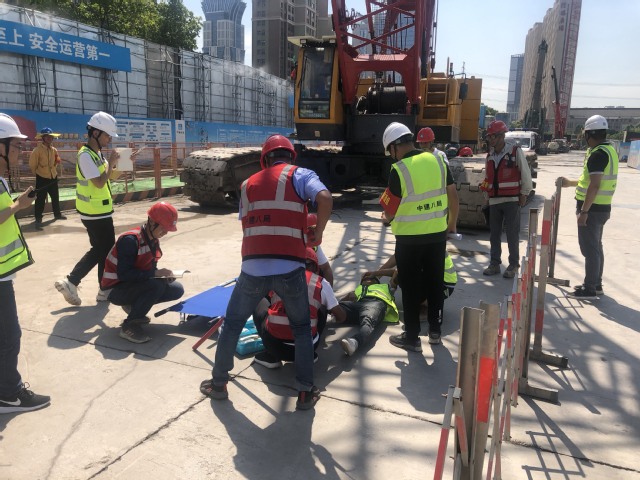 本次應(yīng)急演練活動模擬施工現(xiàn)場履帶式起重機(jī)在作業(yè)過程中由于鋼絲繩斷裂,吊物從高處掉落倒下,不幸將地面一名作業(yè)人員腳部砸傷的事故?,F(xiàn)場專職安全員發(fā)現(xiàn)后第一時間向應(yīng)急救援指揮部匯報,應(yīng)急救援指揮部立即啟動應(yīng)急預(yù)案,各應(yīng)急救援小組接到救援命令后,迅速跑向事故地點(diǎn),對受傷人員開展救援工作,同時拉起警戒線,保護(hù)現(xiàn)場。救援人員按預(yù)案分工,有條不紊地實(shí)施清障、包扎、傷員擔(dān)架固定、運(yùn)送上救護(hù)車等一系列動作。本次演練活動,增強(qiáng)了員工的安全操作意識,提高了快速反應(yīng)能力、應(yīng)急救援能力以及協(xié)同作戰(zhàn)能力。