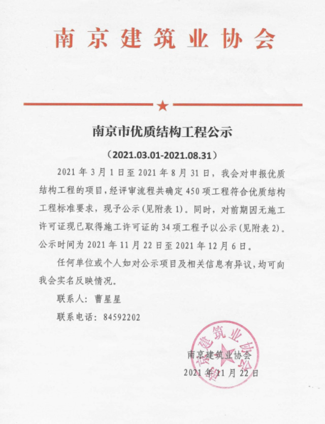 近期,河西南部小學(6#)及鄴城路幼兒園項目幼兒園單體被評為“南京市優(yōu)質結構工程”,此次獲評,意味著該項目在工程結構設計、工程施工管理、過程質量控制等方面得到了南京市質監(jiān)站、建筑業(yè)協會等部門的肯定,施工質量達到南京市領先水平。