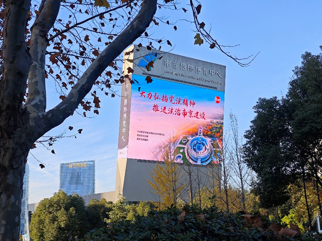 憲法是國(guó)家的根本大法,是治國(guó)安邦的總章程。今年12月4日是第十個(gè)國(guó)家憲法日,12月4日所在的周是第六個(gè)“憲法宣傳周”。為深入學(xué)習(xí)宣傳貫徹習(xí)近平法治思想,著力營(yíng)造學(xué)習(xí)宣傳憲法的濃厚氛圍,弘揚(yáng)憲法精神,維護(hù)憲法權(quán)威,集團(tuán)充分借力戶外大屏媒介載體進(jìn)行普法宣傳,會(huì)展、公園、酒店等板塊根據(jù)集團(tuán)部署聯(lián)運(yùn)同步點(diǎn)亮“大力弘揚(yáng)憲法精神、推進(jìn)法治南京建設(shè)”宣傳標(biāo)語(yǔ),利用各類公共場(chǎng)所電子顯示屏滾動(dòng)播放,使憲法宣傳走進(jìn)千家萬(wàn)戶。