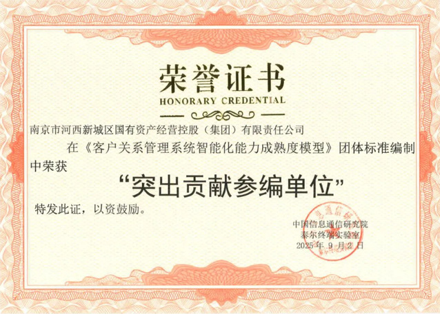 2025年9月,中國信息通信研究院召開《面向企業用戶的客戶關系管理系統智能化能力成熟度模型》團體標準終審研討會,作為該領域的核心參編單位與重要實踐者,河西集團榮獲“突出貢獻參編單位”。