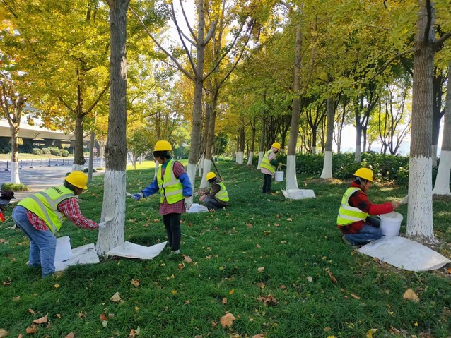 霜降過后,氣溫有了短暫的回升,但是隨著冬季到來,新一輪寒潮即將悄然來襲。為增強(qiáng)樹木的耐寒性及抗蟲性,近日,河西集團(tuán)園林公司搶抓晴好天氣,精心組織綠化工人為南京市建鄴區(qū)、南通市崇川區(qū)等公司綠化管養(yǎng)范圍的樹木刷白“穿新衣”。