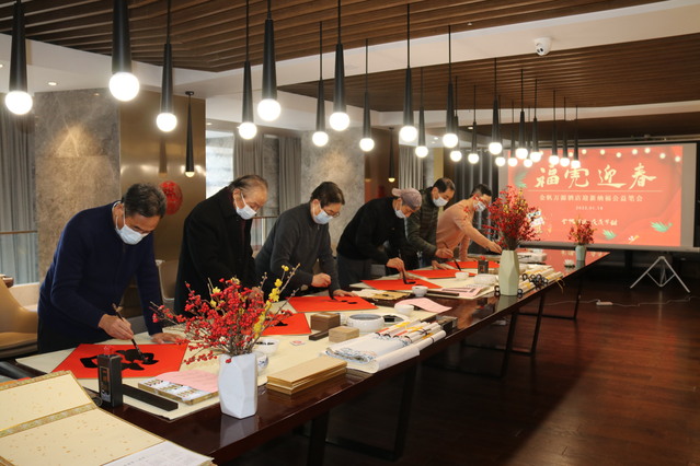 寫春聯(lián)、貼春聯(lián)是中國春節(jié)的傳統(tǒng)習(xí)俗,也是辭舊迎新過大年的一種象征。為弘揚中華書法藝術(shù)與傳統(tǒng)節(jié)日文化,給市民、住店客人送上新春祝福。近日,河西集團青奧城公司金帆萬源酒店開展“福虎迎春”2022新年納福公益筆會,來自南京的書畫名家應(yīng)邀出席。
