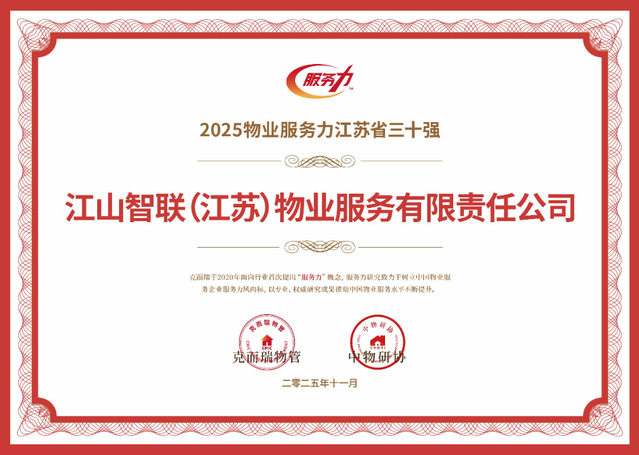 河西集團江山智聯(lián)物業(yè)憑借卓越的服務品質與前瞻的戰(zhàn)略布局,一舉斬獲2025南京國有物業(yè)服務力領先企業(yè)TOP1、2025江蘇省服務力市場運營領先企業(yè)TOP3、2025物業(yè)服務力南京十強、2025物業(yè)服務力江蘇省三十強、2025華東區(qū)域物業(yè)服務力百強企業(yè)、五項行業(yè)重磅榮譽。